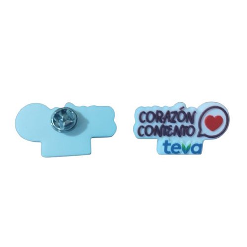 Pin Solapero Microinyectado, material plastisol, inyeccion 3 colores mas base, medida 4cm x 2.5cm aprox., acabado con pin dorado, embolsado individual